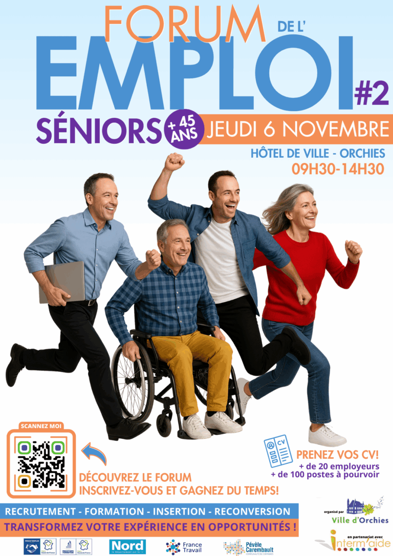 Rendez-vous jeudi 6 novembre 2025 à l’ Hôtel de Ville pour la 2e édition du forum de l’emploi séniors !...
