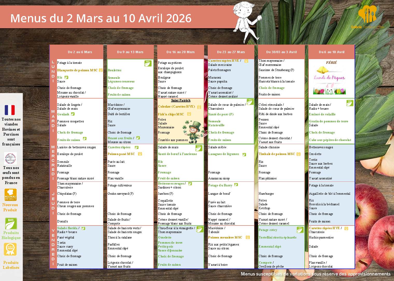 MENU DES CANTINES